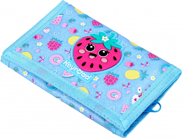 Le portefeuille élégant pour fille Keyroad en tissu résistant séduit par ses motifs colorés et sa conception pratique. Il dispose d’une fermeture velcro fiable, de dimensions compactes pour les petites mains et est disponible en 3 designs joyeux – fraise, donut et petit lapin.