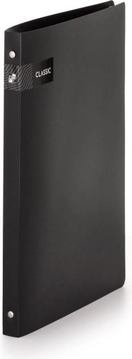 Classeur à anneaux élégant en polypropylène extra épais dans une couleur noire universelle, offrant un rangement fiable des documents au format A4. Grâce au mécanisme à 4 anneaux et au dos mince de 2 cm, il est idéal pour le cartable comme pour une archivage clair et ordonné.