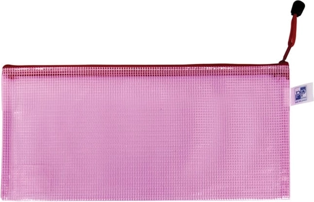 Pratique pochette rose avec fermeture zippée idéale pour le rangement sécurisé des justificatifs, de l’argent et des documents. Fabriquée en plastique et renforcée par un tissu maillé pour une résistance accrue.