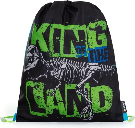 Sac pratique pour sport et chaussons avec motif dinosaure en polyester résistant. Fermeture par cordons coulissants pour une fermeture rapide et sûre, peut se porter sur le dos ou se fixer au cartable. Léger et compact, idéal pour l’école et les activités extrascolaires.