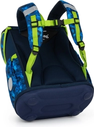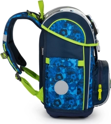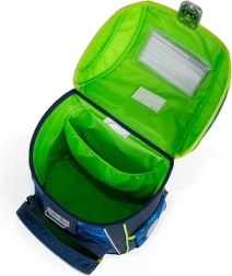 Le compartiment principal accueille toutes les fournitures scolaires et conserve sa forme grâce au renfort interne. La poche frontale est idéale pour le goûter et les petits objets. La sécurité est renforcée par une boucle métallique dotée d’un élément réfléchissant intégré, ainsi que par des détails réfléchissants tout autour. Le fond rigide protège le contenu contre le renversement et l’éparpillement, et des crochets supplémentaires facilitent la fixation des bretelles.