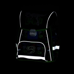 Le cartable de la gamme Premium est anatomiquement façonné pour garantir un positionnement correct sur le dos. Le dos renforcé et l’armature intérieure maintiennent la forme du sac. Le rembourrage est en matériau agréable et respirant, et les bretelles larges et matelassées sont conçues pour épouser parfaitement les épaules de l’enfant et répartir la charge de manière uniforme. Le cartable se compose d’un compartiment spacieux permettant d’emporter aisément toutes les fournitures scolaires pour les enfants de 1re et 2e année. Le fond du sac, en matériau rigide, protège le contenu contre le renversement et l’éparpillement. La fermeture se fait par boucle de sécurité. La petite poche avant est prévue pour le goûter, et de nombreux éléments réfléchissants améliorent la visibilité du cartable. Volume : 28 l. Charge maximale : 8 kg.
