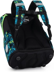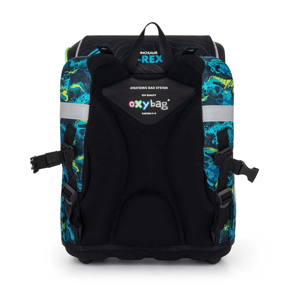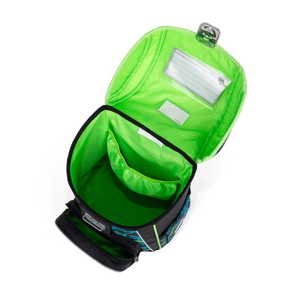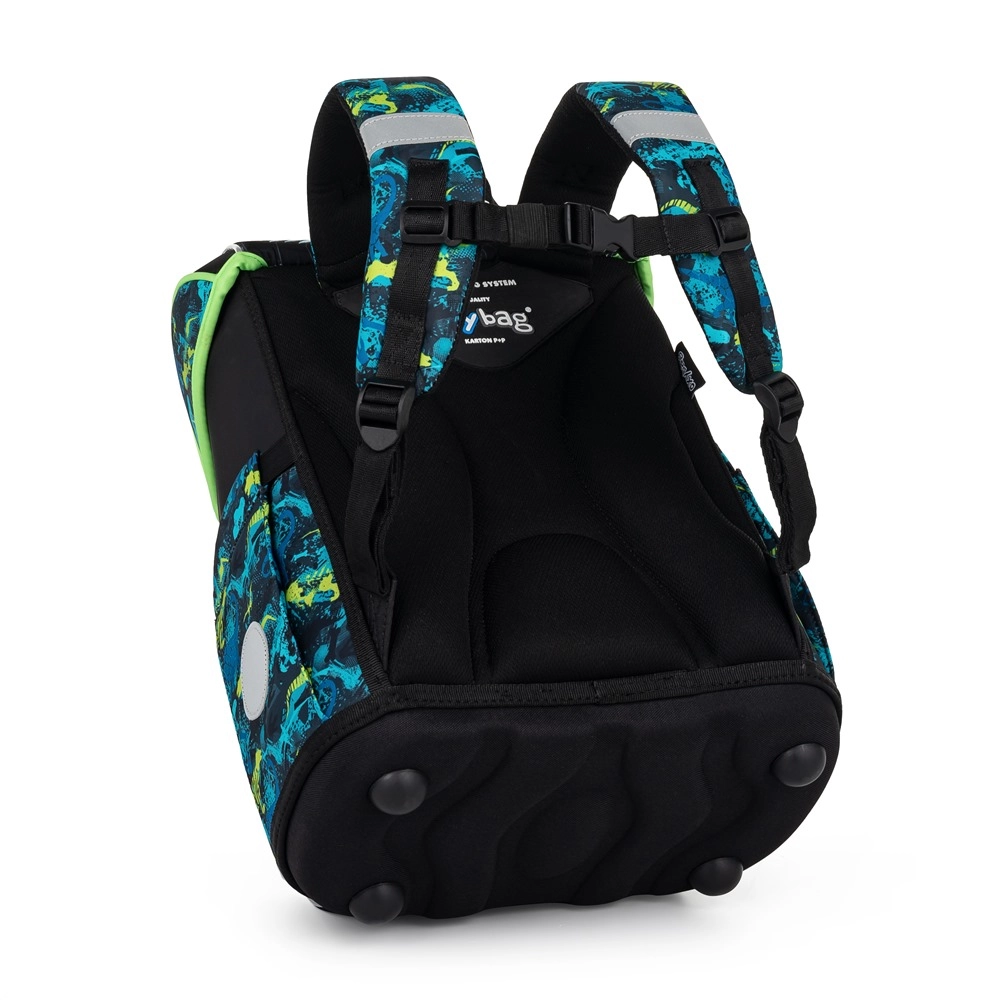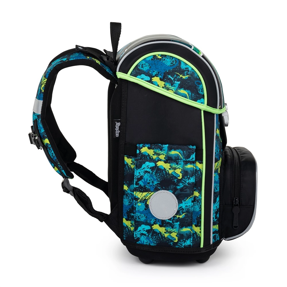 Le cartable scolaire de la gamme Premium est de forme anatomique, garantissant un maintien correct sur le dos. Le dos renforcé et l’armature interne maintiennent la forme stable du sac. Le rembourrage est en matériau agréable et respirant, et les bretelles larges et matelassées sont conçues pour épouser parfaitement les épaules de l’enfant et répartir la charge de manière uniforme. Le cartable se compose d’un compartiment spacieux pouvant accueillir aisément toutes les fournitures scolaires des enfants de 1re et 2e année. Le fond du sac est en matériau rigide, protégeant le contenu contre le renversement et l’éparpillement. La fermeture est équipée d’une boucle de sécurité. La petite poche frontale est destinée au goûter, et de nombreux éléments réfléchissants rendent le cartable plus visible. Volume : 28 l. Charge maximale : 8 kg.