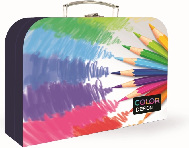 Pratique mallette en laminé avec motif de crayons pour l’école et les loisirs, idéale pour le matériel d’arts plastiques et les cahiers au format A4. Surface laminée résistante, fermeture métallique sécurisée et rivets métalliques solides pour une longue durée de vie. Format compact 340 × 230 × 100 mm et poids de 0,495 kg pour un transport facile.