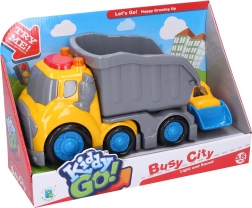 Avec cet ensemble de véhicules de chantier Kiddy, les enfants profiteront d’heures de jeu créatif. Le camion-benne avec remorque possède des portes mobiles et des effets activés par un bouton sur le toit de la cabine, tandis que le bulldozer est équipé d’une pelle mobile pour charger et décharger. Grâce aux roues libres, les véhicules sont faciles à manœuvrer même pour les plus jeunes conducteurs.