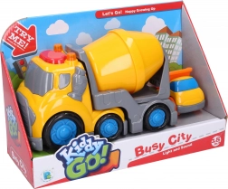 Ensemble amusant de véhicules de chantier pour tout-petits : bétonnière avec effets 19,5 cm et mini benne 6,5 cm. Offre des effets lumineux et sonores, une remorque rotative avec bétonnière, un bennage fonctionnel et des roues libres. Les piles sont incluses, convient à partir de 18 mois.