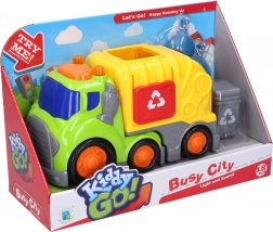 Ce camion-benne à ordures détaillé est idéal pour les petits passionnés de technologie et des services urbains. Grâce aux effets lumineux et sonores, il crée une atmosphère authentique et stimule l'imagination pendant le jeu. La poubelle ouvrante et les portes mobiles permettent de manipuler facilement les “déchets” et de créer des scénarios réalistes de collecte.