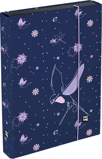 Cette boîte pour cahiers format A5 est idéale pour le transport quotidien d'articles scolaires. Elle possède une surface laminée robuste et une fermeture par élastique qui assure que le contenu est solidement gardé. La largeur du dos est de 3,5 cm, ce qui offre suffisamment d'espace pour de nombreux cahiers et documents.