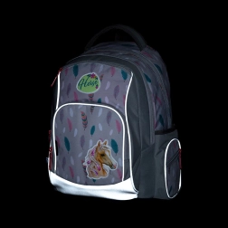 Le fond rigide pratique protège contre la saleté et les fuites accidentelles. Le sac offre un grand nombre de poches, afin que clés et petits objets soient toujours à portée de main. Les éléments réfléchissants augmentent la visibilité des enfants sur le chemin de l’école et du retour.