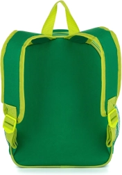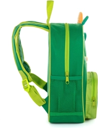 Un sac à dos vert vif avec l’inscription DINOSAUR qui motive les enfants à porter leurs affaires eux‑mêmes et se remarque autant à la cour de récré qu’à la maternelle.