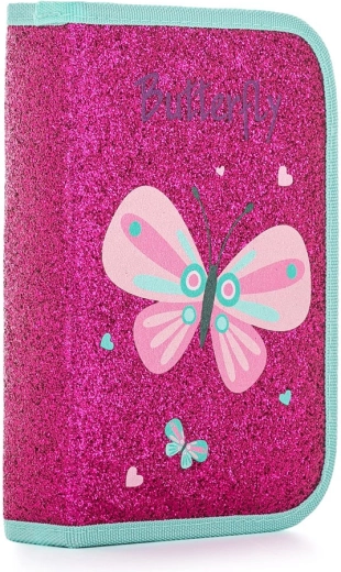 La trousse scolaire à un étage avec effet paillettes et motif papillon allie un look attrayant à une organisation pratique. Grâce aux deux rabats, tout est facile à trouver et les fournitures restent bien fixées dans les passants. Les films transparents sur les rabats intérieurs permettent d’avoir l’emploi du temps toujours sous les yeux.