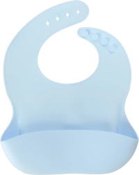 Le bavoir en silicone souple, avec fermeture réglable et poche profonde, retient efficacement miettes et liquides et protège les vêtements à chaque repas.