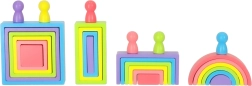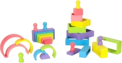 Les pièces en bois multicolores encouragent les enfants à construire des ponts, des tours et des compositions arc‑en‑ciel. Elles stimulent l’imagination et l’exploration autonome grâce à un jeu ouvert.