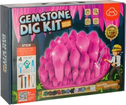 Transformez le salon en petit site de fouilles et découvrez les trésors de la Terre. Ce kit géologique développe la motricité fine, la curiosité et la capacité de concentration : les enfants dégagent les pierres du « cristal » en plâtre rose, les nettoient et, grâce à la carte GEM MAP, apprennent les bases de la minéralogie.