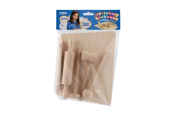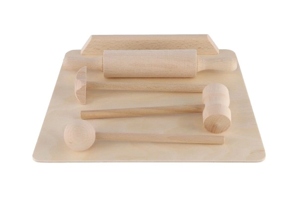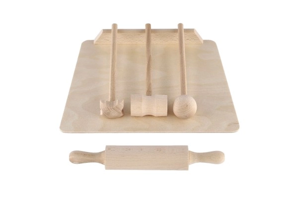 Set de cuisine en bois pour enfants – planche, rouleau et maillet 23 cm