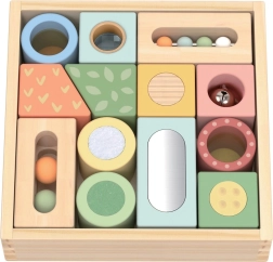 De9couvrez la magie de ces blocs sensoriels cone7us pour d0e9velopper la curiosit0e et l'imagination des enfants. Chaque bloc est fait de bois certifi0e FSC0ae assurant la responsabilit0e écologique du produit. Gr0e2ce e0 la diversit0e des mat0e8res et des textures, les enfants apprennent 0e reconnaitre et distinguer plusieurs 0e9l0e9ments de leur environnement.