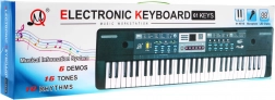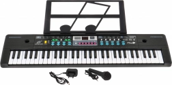 Contenu de la boîte: clavier, adaptateur secteur, microphone, pupitre. Alimentation sur secteur (adaptateur inclus) ou 6× AA 1,5 V (non incluses).