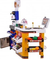Ce supermarché pour enfants détaillé transforme la chambre en véritable boutique. Le set comprend une caisse avec lecteur de cartes, scanner, microphone, balance, réfrigérateur ouvrant, des étagères et de nombreuses maquettes réalistes d’aliments. Grâce aux effets lumineux et sonores, le jeu est encore plus amusant et stimule l’imagination ainsi que les compétences sociales.