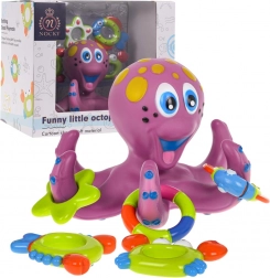 Ce jouet de bain coloré transforme chaque bain en un moment de jeu joyeux. La pieuvre violette souriante et ses cinq anneaux amovibles en forme de crabe, poisson, écrevisse, étoile et anneau invitent les enfants à explorer et à exercer leurs compétences. Le plastique souple est agréable en main et doux pour la peau délicate des enfants.