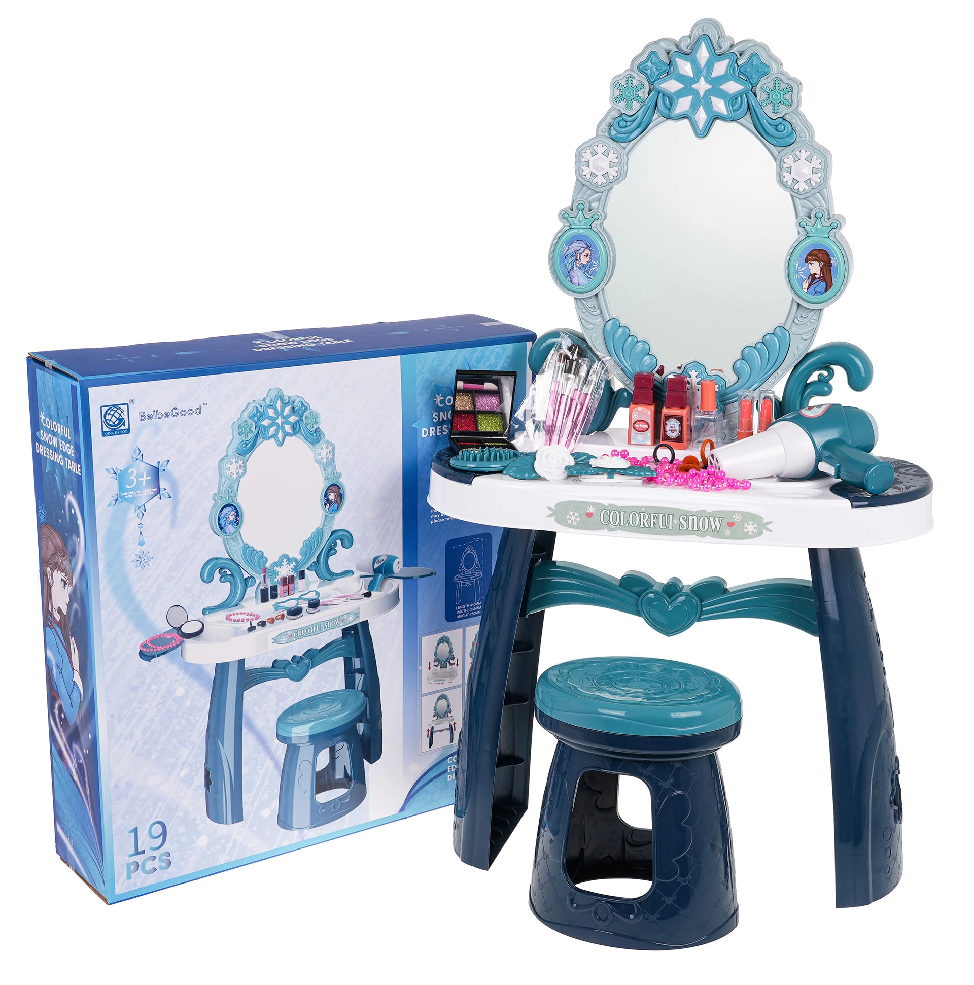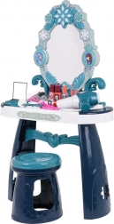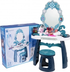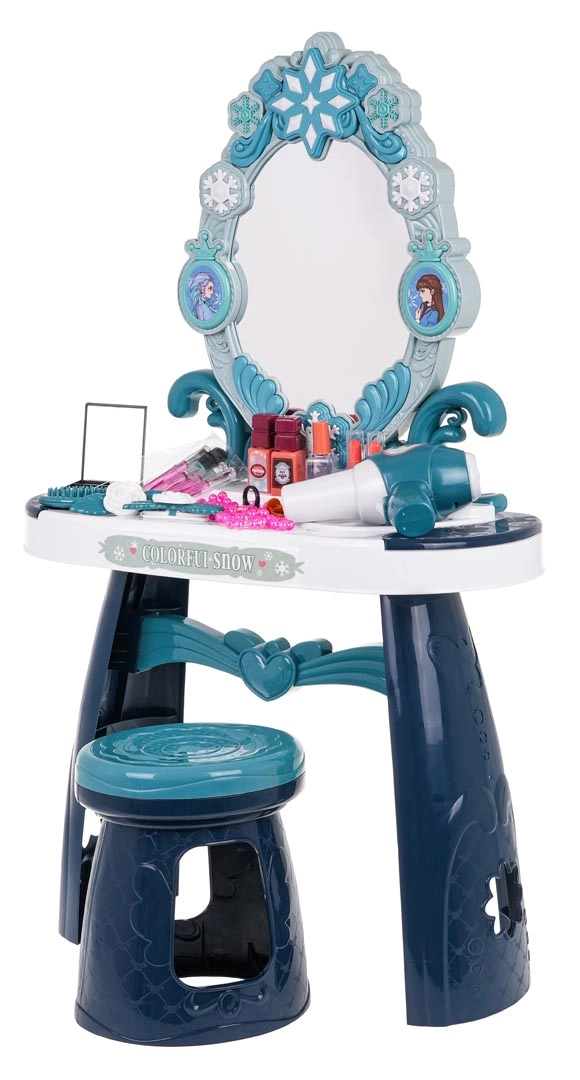 - destiné aux enfants à partir de 3 ans, .- fabriqué en plastique de la plus haute qualité aux couleurs éclatantes, .- joli miroir décoré, .- effets sonores, .- effets lumineux, .- plateau spacieux de la coiffeuse, .- structure stable, .- fauteuil/tabouret confortable, .- sèche‑cheveux avec sons de soufflerie, .- large assortiment d’accessoires de maquillage factices. .