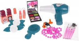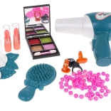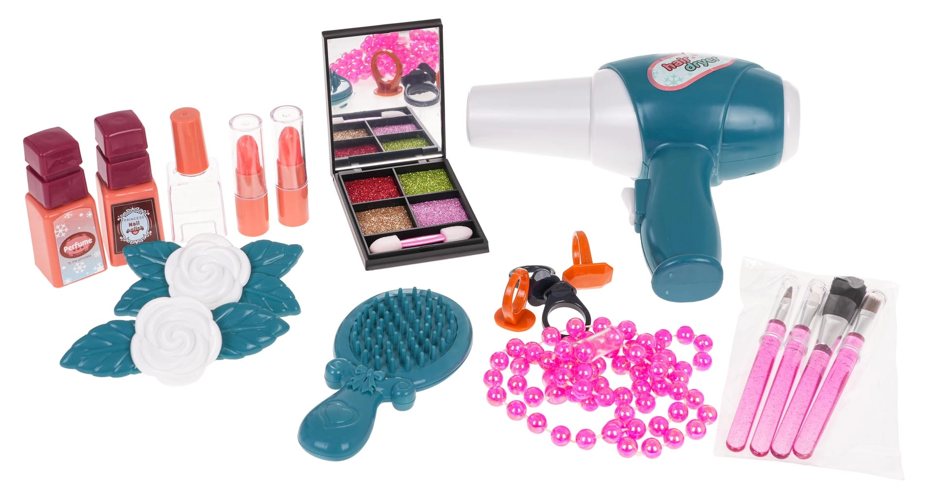 - coiffeuse, .- tabouret, .- sèche‑cheveux, .- perles, .- bracelet, .- 2 x faux rouges à lèvres, .- faux vernis à ongles, .- faux parfum, .- pot cosmétique, .- 2 x pince à cheveux, .- brosse à cheveux, .- 4 x anneau, .- trousse cosmétique avec miroir, pinceau et palette factice, - 4 x pinceau à maquillage, . |