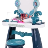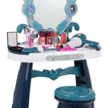 Coiffeuse interactive avec accessoires et tabouret, pour enfants dès 3 ans. L’ensemble est fabriqué en plastique de la plus haute qualité aux couleurs vives. En plus d’une belle coiffeuse avec plateau et miroir décoré, nous proposons un tabouret confortable pour les petites fashionistas. Le coffret comprend un sèche-cheveux et un riche assortiment d’accessoires de maquillage factices. La coiffeuse fonctionne avec 3 piles AA 1,5 V (non incluses), le sèche‑cheveux avec 1 pile AA 1,5 V (non incluse). . . Fonctions de l’ensemble :