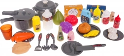 Casseroles, couvercles, plaques, ustensiles, épices, petites bouteilles, assiette et aliments factices – tout se range facilement sur les étagères, dans le four et le grill à portes ouvrantes.