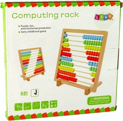Abacus classique en bois à 10 rangées, idéal pour les premiers pas en mathématiques. 100 perles colorées en cinq nuances favorisent le comptage, le tri et la motricité fine. Construction stable en bois, pieds pliables pour une utilisation confortable et certifications CE, EN71 garantissant une activité sûre pour les enfants à partir de 3 ans.