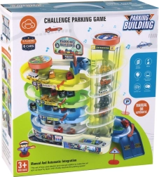 Chaque niveau du parking propose quatre places de stationnement, permettant aux enfants de garer facilement les petites voitures incluses. Un élément unique est l’ascenseur, qui permet de déplacer les voitures entre les niveaux. À la sortie de l’ascenseur, les petites voitures descendent automatiquement, créant un jeu plus dynamique et excitant.