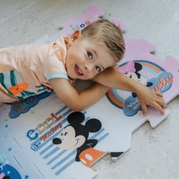 Plongez dans le monde du jeu avec le puzzle en mousse, qui présente des images du célèbre Mickey et ses amis. Le puzzle est fabriqué en matériau spécial qui ne ressemble pas à la mousse EVA classique striée, mais ressemble à un tapis de sol épais ou à un multiclaps mirelon.