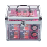 - Vernis à ongles, séparateur d’orteils, eyeliner, lime à ongles, rouges à lèvres, miroir, gloss pour les lèvres, fards à paupières, blush, poudre