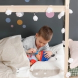 Au contact de l’eau, l’assiette révèle le plat préféré de Jonas. Sur le pot, le pipi et le caca apparaissent magiquement – une manière ludique d’apprendre l’hygiène.