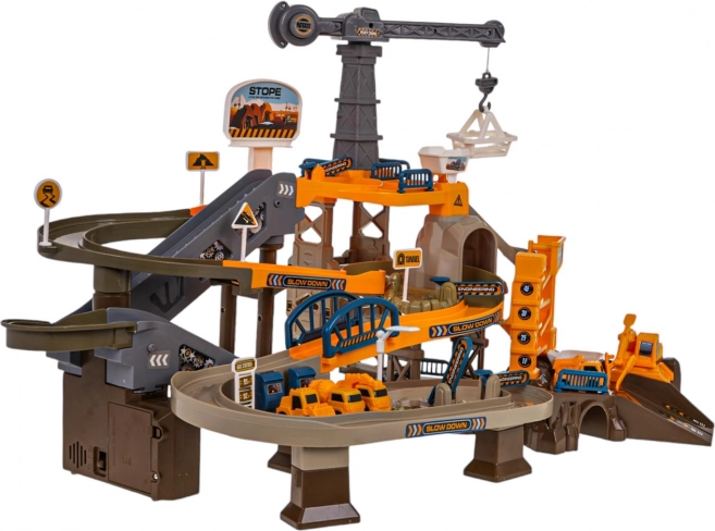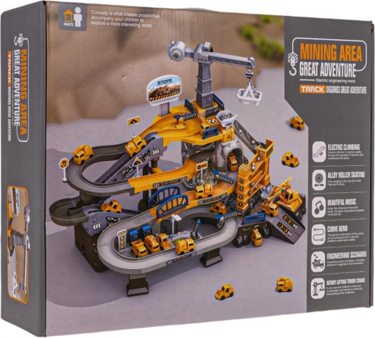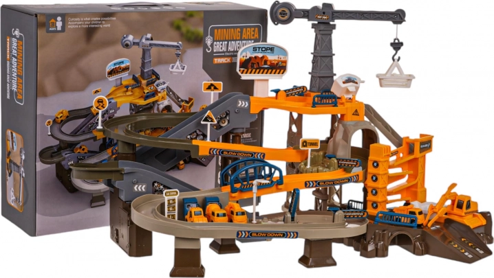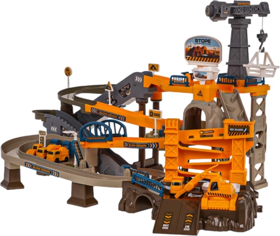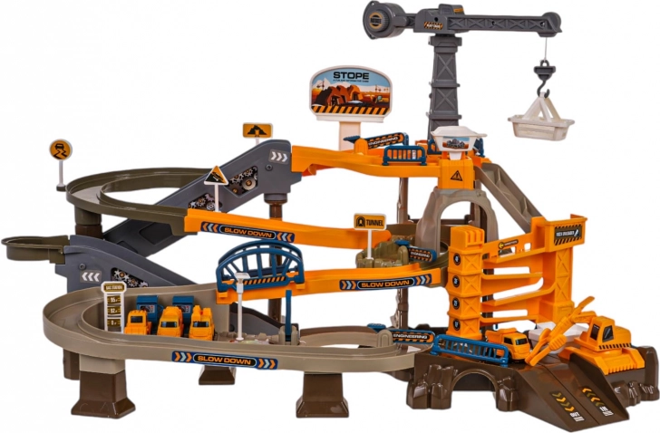 Ce set détaillé transforme la chambre des enfants en un chantier vivant. Grâce à la piste à bande électrique, les véhicules montent jusqu’au sommet, où les attendent des descentes courbes, des tunnels et des barrières ouvrantes. Des effets sonores agréables renforcent l’ambiance d’un chantier animé.