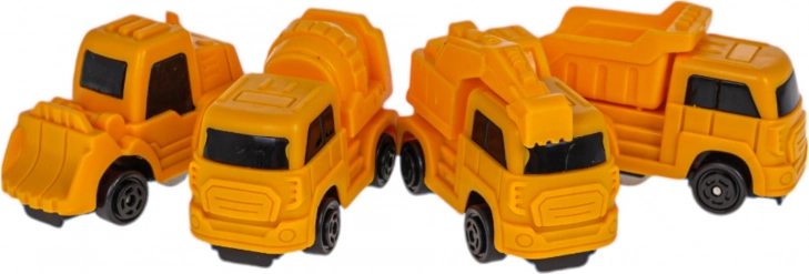 Quatre engins compacts – benne, pelleteuse, bétonnière et bulldozer – parfaitement adaptés aux petites mains et prêts pour chaque mission.