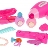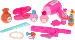 Inclus: sèche-cheveux, lisseur, trousse de maquillage, peigne, parfum, vernis, rouges à lèvres, bagues, barrettes, bracelet et autocollants – tout pour une transformation complète.