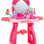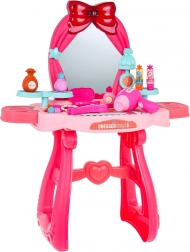 Des pieds solides avec petits cœurs, un grand miroir et de jolis détails dans des tons roses font de cette coiffeuse un endroit sûr et ravissant pour jouer.