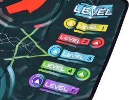 Le tapis propose différents modes et niveaux de difficulté qui font progresser les enfants pas à pas tout en maintenant leur attention et leur motivation à bouger.