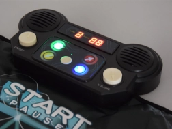 Le panneau intégré permet de choisir rapidement un mode, lancer le jeu, mettre en pause ou régler le volume – tout à portée de main.
