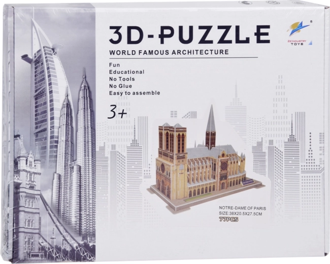 Construisez l’iconique cathédrale Notre‑Dame de Paris avec un puzzle 3D de 77 pièces. Le montage se fait sans colle et sans découpe, pour une expérience propre, simple et sûre, même pour les enfants. Le modèle offre des détails réalistes, développe la motricité fine et la représentation spatiale et constitue un divertissement éducatif pour toute la famille.