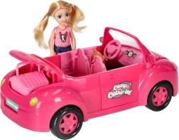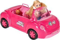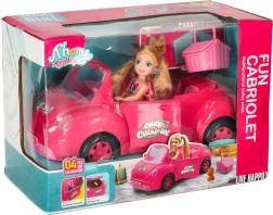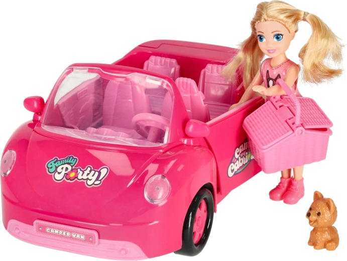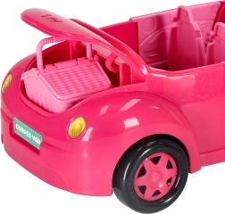 Cabriolet rose pour poupées avec set de pique-nique et petit chien