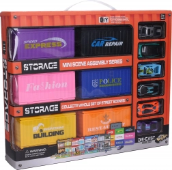Nous vous présentons Ville Conteneur, idéal pour les petits constructeurs et collectionneurs de voitures miniatures. L'emballage comprend :