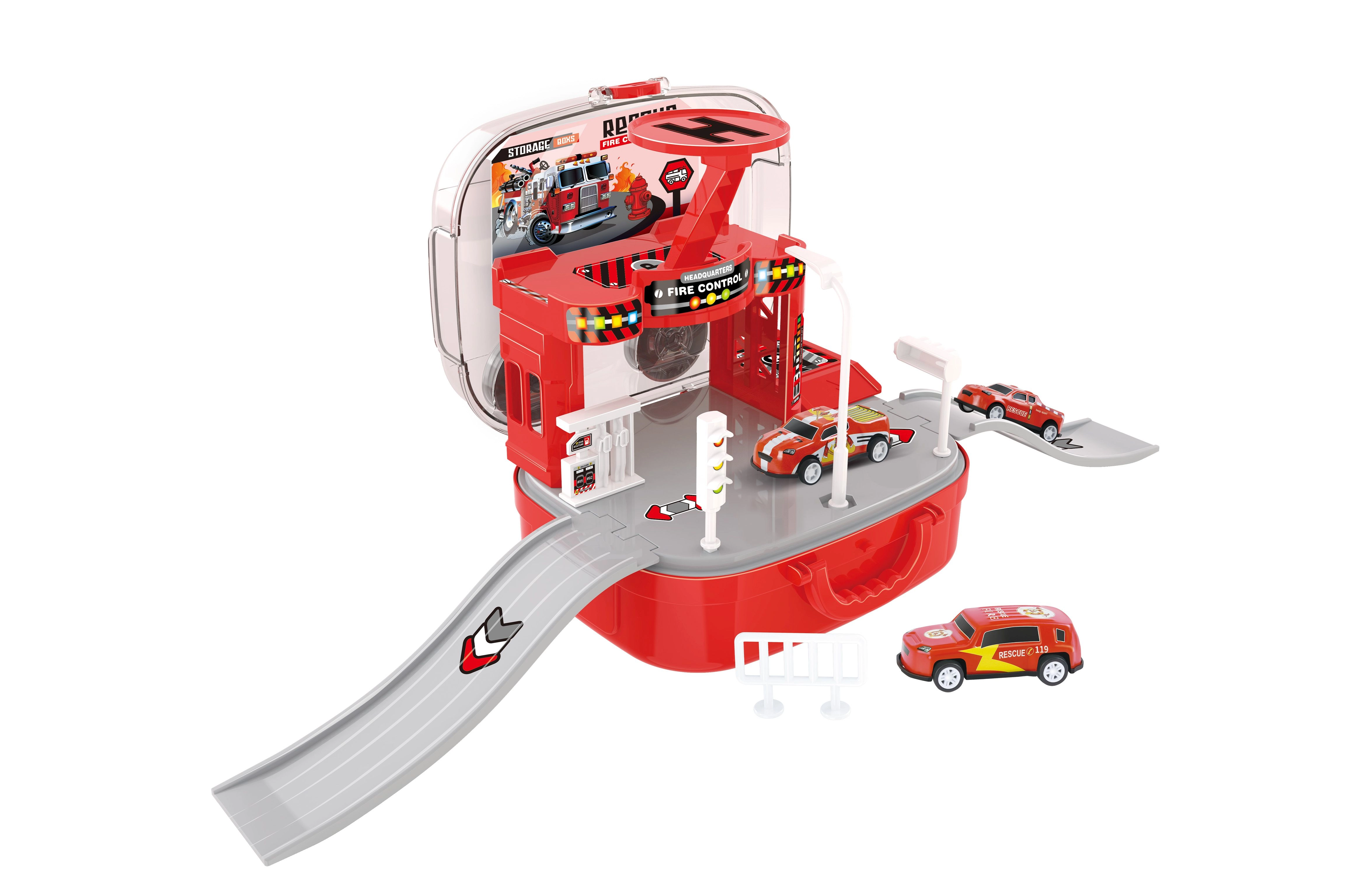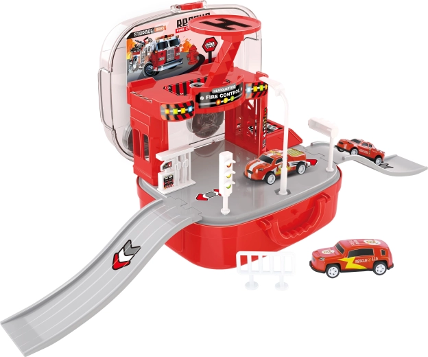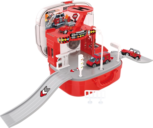 Cette caserne de pompiers en valise ingénieuse ravira les petits amoureux des secouristes. Les enfants peuvent créer leurs propres interventions, déplacer les véhicules entre les étages grâce à l’ascenseur manuel et déployer l’hélicoptère pour des missions rapides. Grâce à la valise pratique, l’ensemble se referme et se transporte facilement après le jeu.
