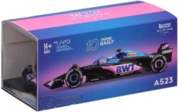 Les couleurs emblématiques de l’équipe bleu, rose et noir, les logos fidèles des sponsors BWT, ALPINE et Castrol et les formes aérodynamiques confèrent à ce modèle l’apparence réaliste du véritable monoplace Alpine A523 (saison 2023). À l’échelle 1:43, il se distingue élégamment dans toute vitrine.