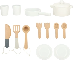 La cuisine est équipée d'un évier en plastique pour "laver la vaisselle", familiarisant ainsi les enfants avec les tâches quotidiennes de la cuisine. Le contenu de l'ensemble comprend une poêle, une casserole avec couvercle, des assiettes, tasses, couverts et autres ustensiles de cuisine. Les accessoires réalistes permettent aux enfants de jouer le rôle d'un petit chef, stimulant leur créativité et leur apprenant les compétences de base de préparation des repas.