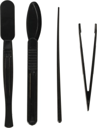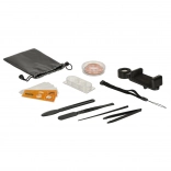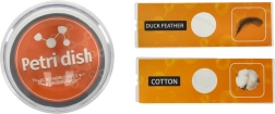 Le set comprend deux lames préparées avec des échantillons (plume de canard et fibres de coton) et quatre autres lames vides pour préparer ses propres échantillons. Cet appareil permet aux enfants de préparer leurs propres échantillons, ce qui stimule encore plus leur intérêt et leur dextérité. L'emballage contient également des outils de base, comme une pince et un scalpel en plastique, pour faciliter la préparation de leurs propres échantillons.