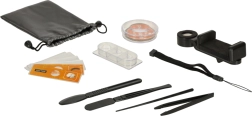 Un support spécial pour appareils mobiles permet aux enfants de visualiser les échantillons sur l'écran, de les photographier et de partager leurs découvertes.