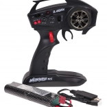 - voiture WILDERNESS, .- télécommande 2,4 GHz, .- batterie rechargeable 7,4 V, - 3 x clé, .- câble USB pour charger la batterie, .- mode d’emploi, - autocollants, . |