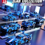 Des voitures de sport bleues aux formes aérodynamiques et aux détails soignés, superbes sur l’étagère comme en action. Des autocollants stylés sont inclus.