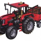 Ce grand kit de construction propose un modèle authentique de tracteur de ferme avec remorque détachable. Grâce aux ingénieux engrenages sur le toit, vous pouvez facilement contrôler la rotation des roues avant, les mouvements de la calandre avant ainsi que le fonctionnement des pistons. Les proportions réalistes et les détails mécaniques raviront petits et grands constructeurs.