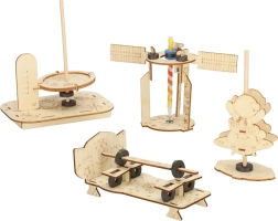 Les pièces en bois découpées au laser s’emboîtent sans colle ni outils. Les enfants apprennent les bases de la mécanique, des engrenages et de l’équilibre pendant l’assemblage.
